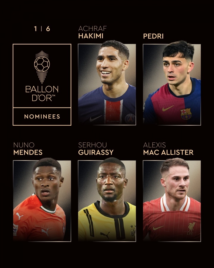 24 Live Network 8月7日新聞金球獎正式宣布了2025年男子金球獎的30人入圍名單。登貝勒(Dembele)帶領巴黎的9名球員入圍,雅馬爾(Yamal),拉菲尼亞(Rafinia)和姆巴佩(Mbappe)被列出。